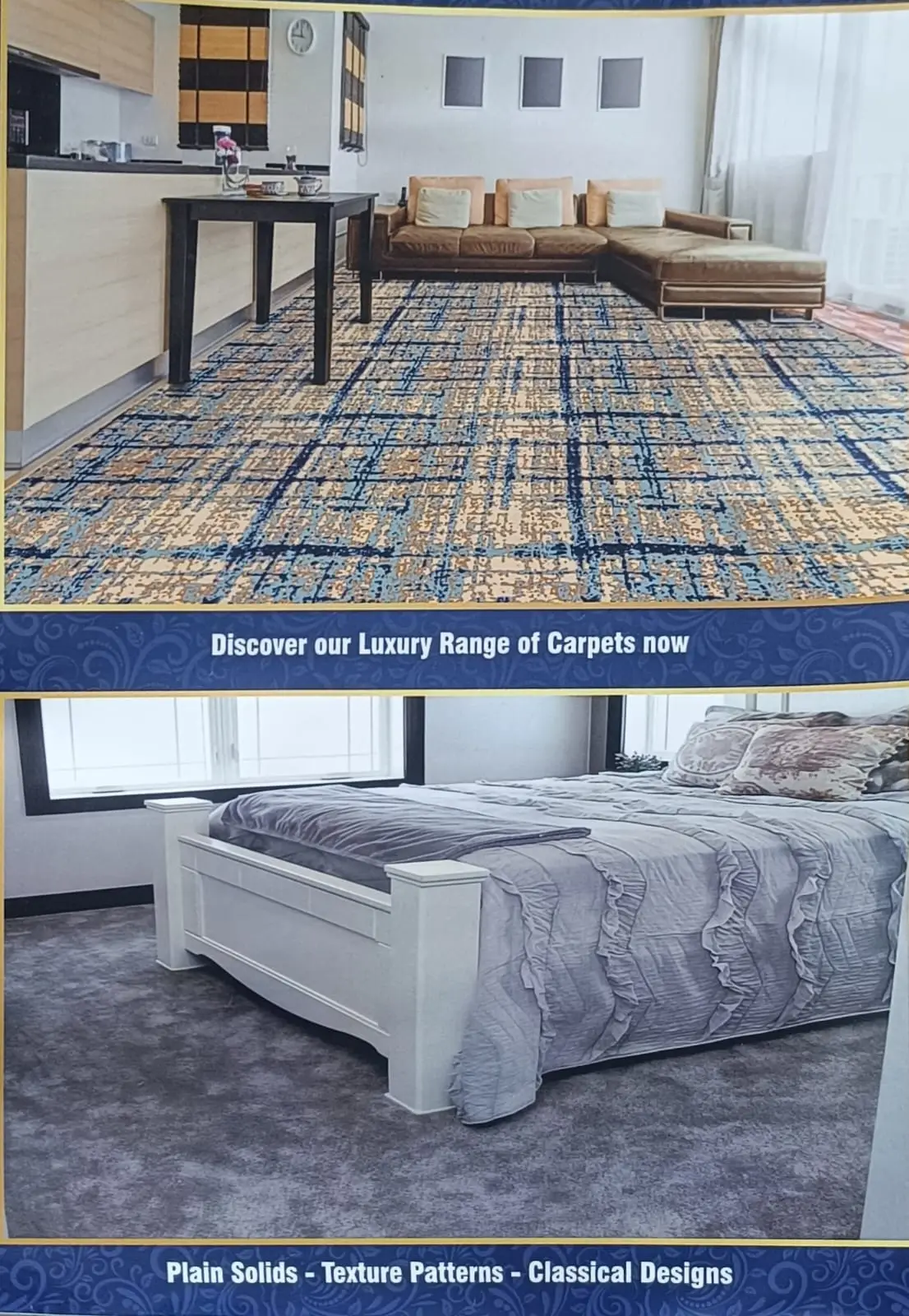 Wall-to-wall carpets provide a seamless flooring look and are ideal for complete home flooring solutions.